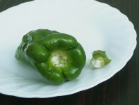 ・二つに切って種を取れば、肉詰め準備OK。